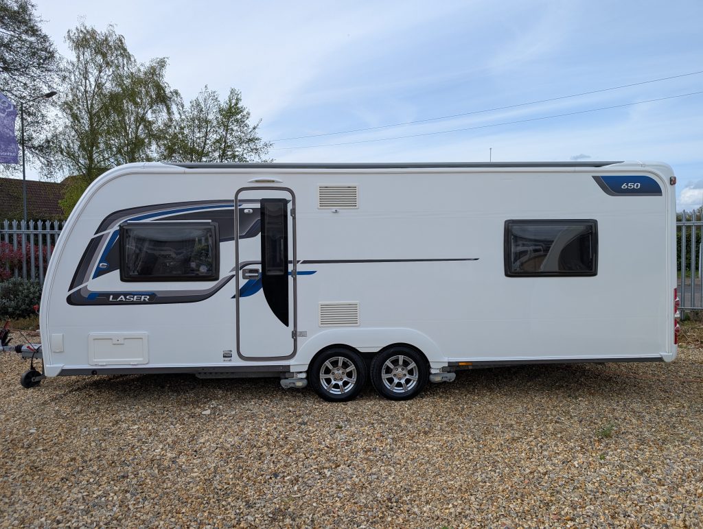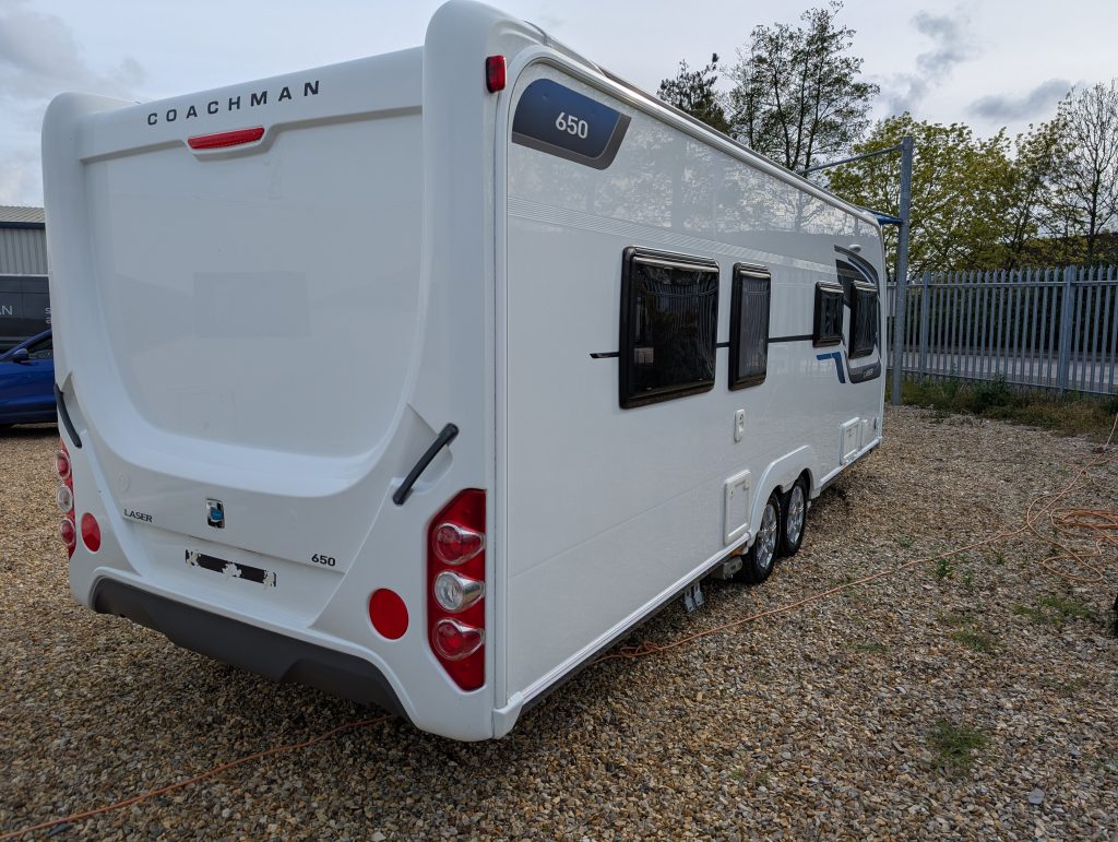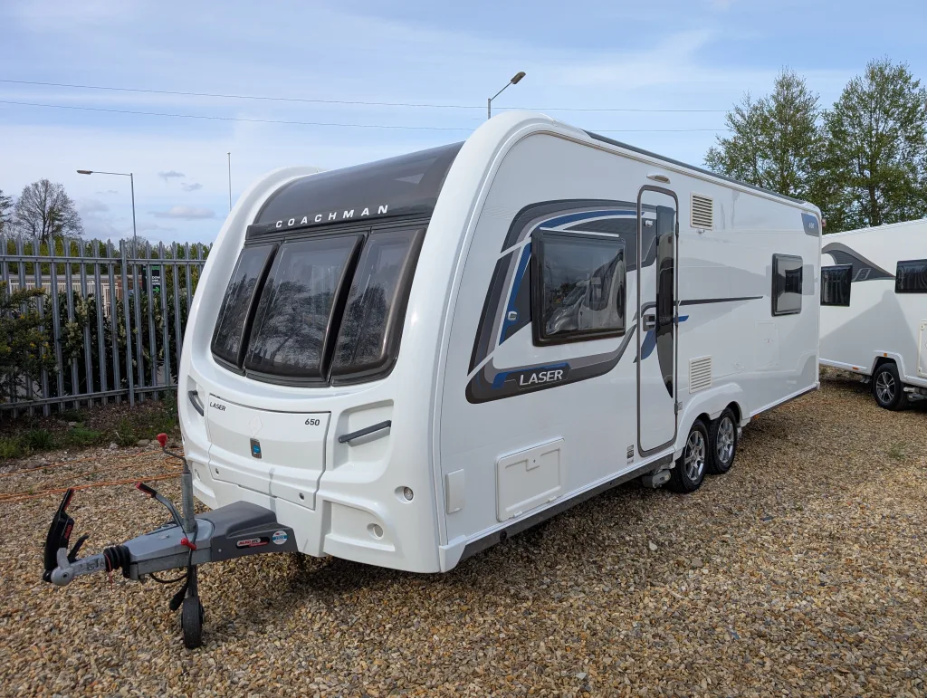The Coachman Laser 650 is widely regarded as one of the best-built caravans of its era. This specific layout is perfect for those who want a permanent bedroom that feels completely separate from the living area.